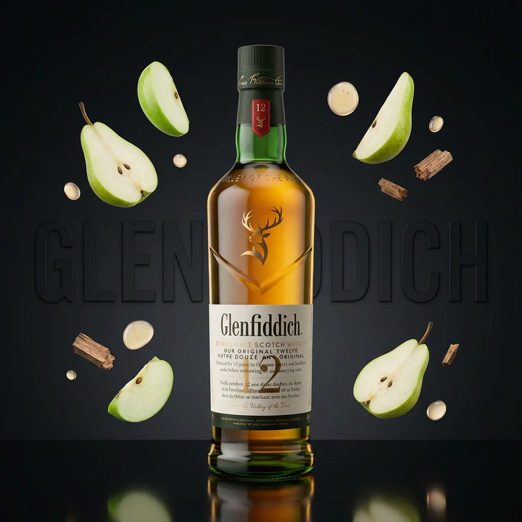 Tasting notes: Pear, malt, oak and subtle floral notes. An icon among single malts, Glenfiddich 12 delivers fresh green pear, gentle oak influences and a long, smooth finish. Perfect for those discovering the world of Scotch or enjoying a timeless classic.